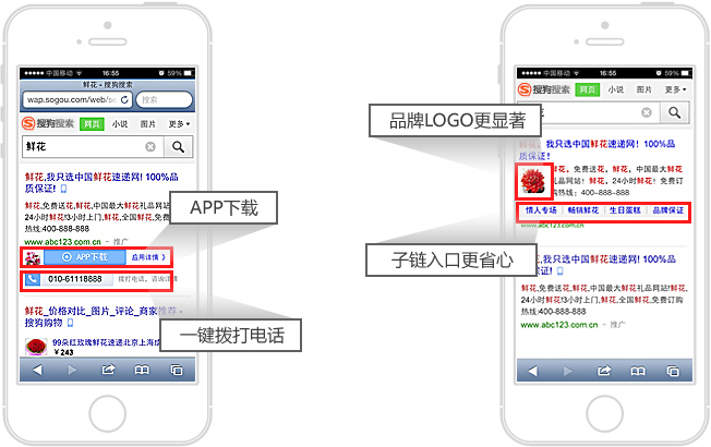 迎合无线网民使用习惯,图文并茂的移动端全新展现样式。